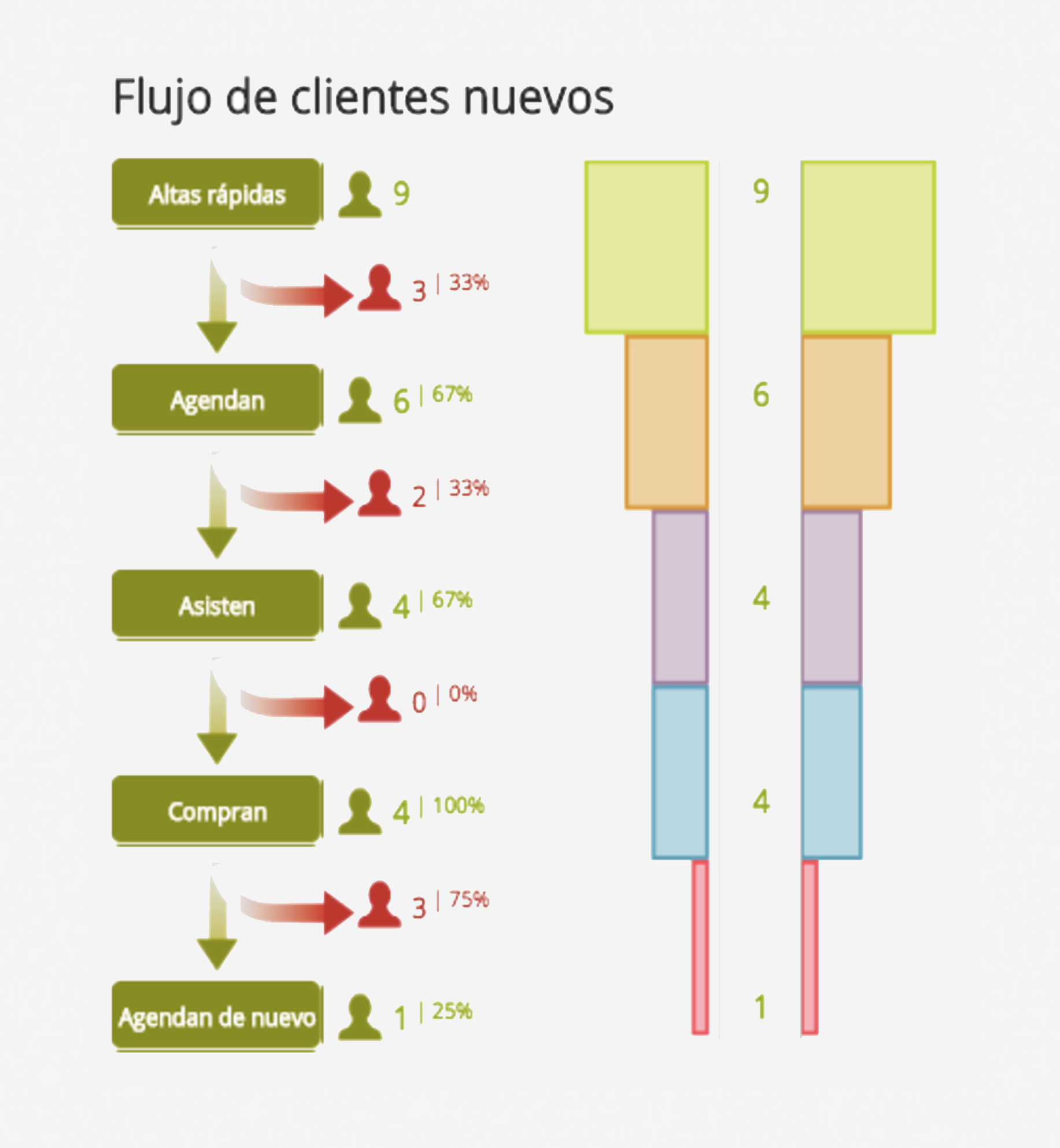 - Informes de rentabilidad. Gracias a esta información podrás conocer el flujo de clientes nuevos que han llegado a tu centro, con respecto a los clientes que has terminado perdiendo. De esta manera, podrás saber en fase del proceso de captación estas perdiendo clientes, o no estás invirtiendo lo suficiente, como para equilibrar estos niveles de flujo de clientes.